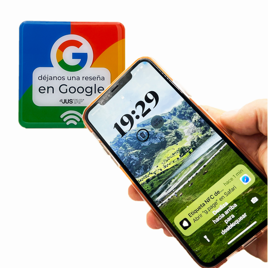 Gracias a la última tecnología NFC que utilizamos, con tan solo acercar el teléfono a 10 cm de distancia de la tarjeta JUSTAP®, conectarán directamente con la pagina de tu negocio para poder dejarte una reseña en Google.
